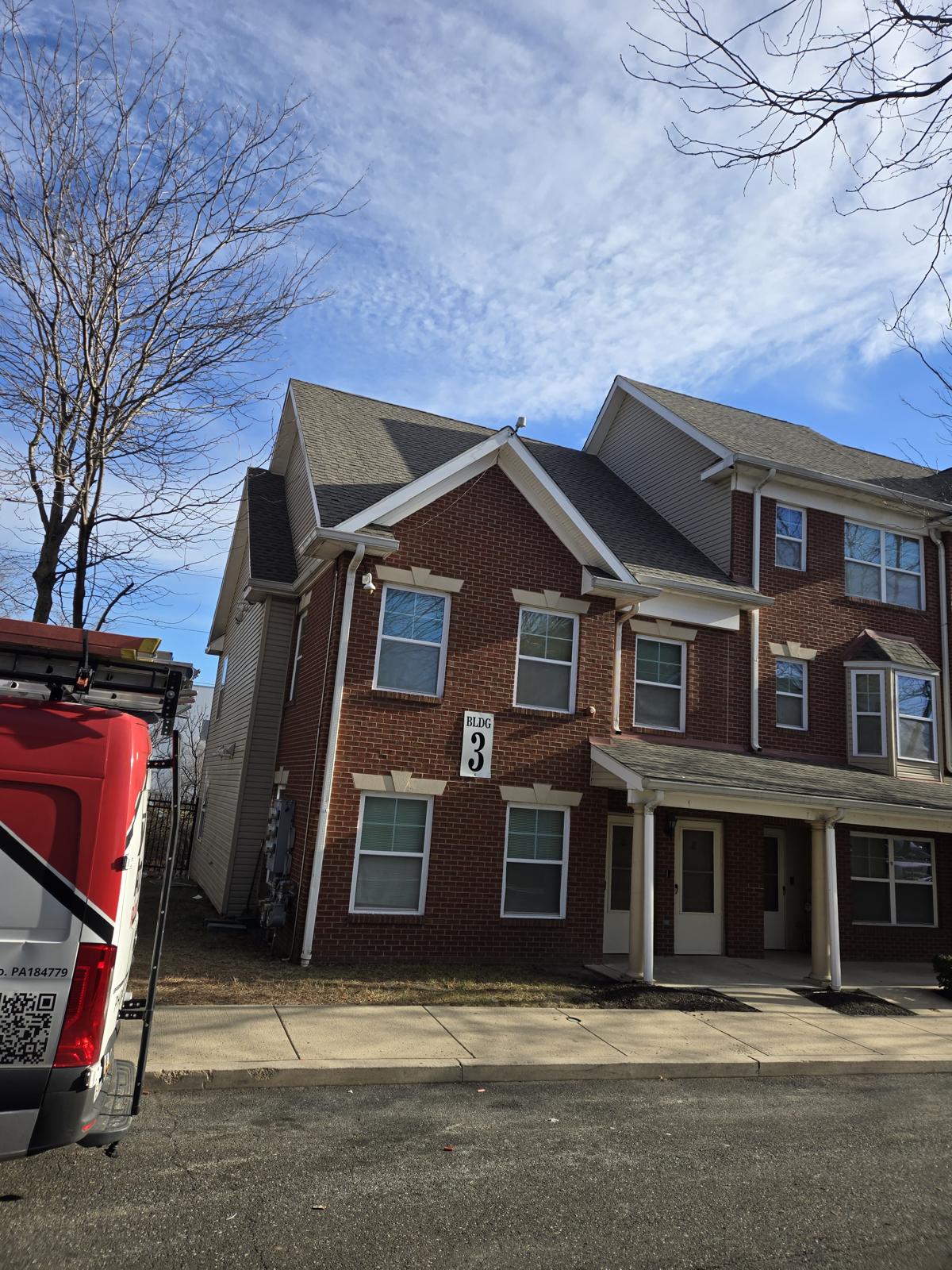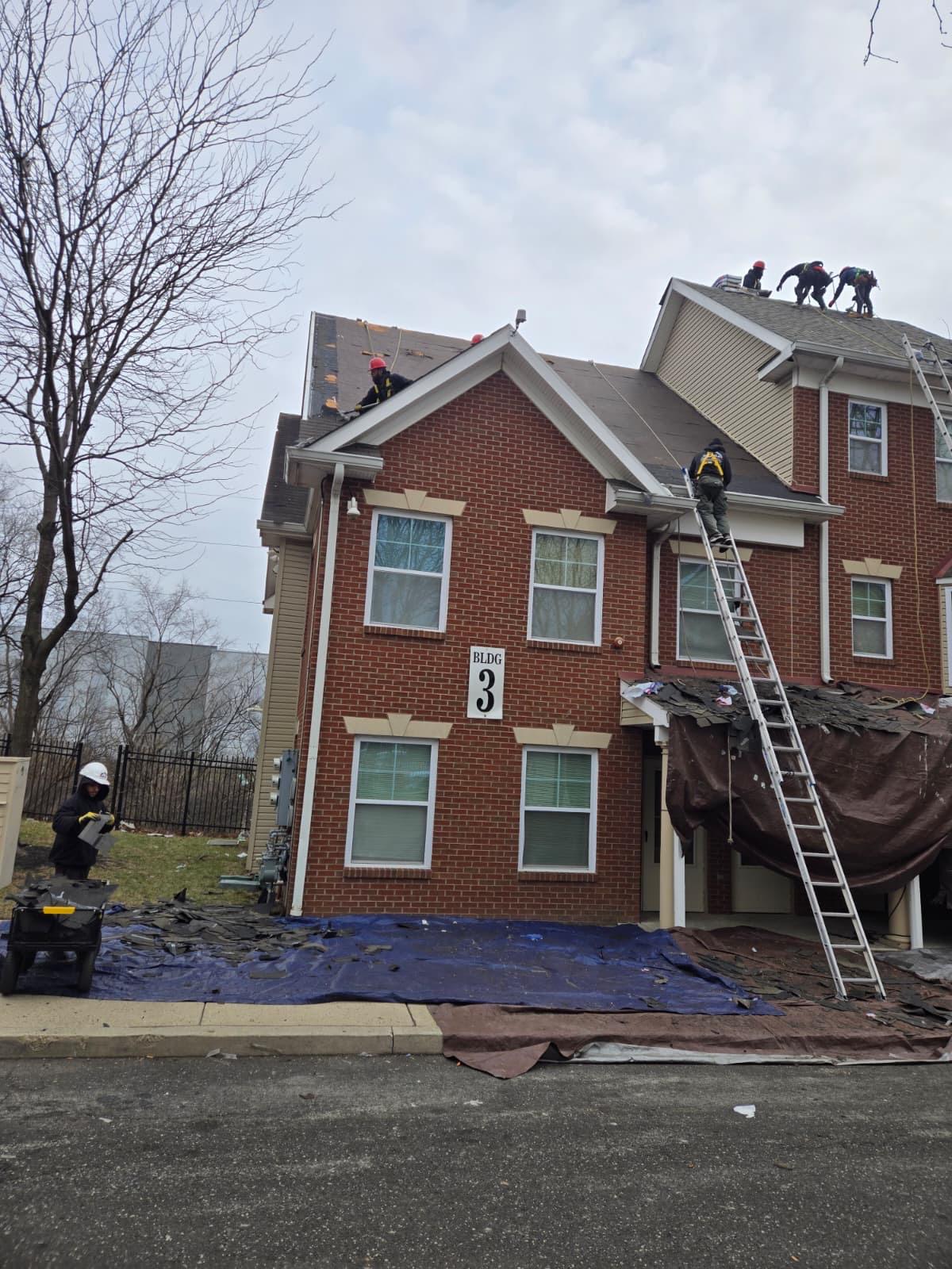 Full roof replacement on a multi-unit townhouse building. Our crew completed a full tear-off and installed new architectural shingles with proper flashing and ventilation.